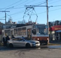 Водитель легковушки не пропустил трамвай на перекрёстке улиц Камышинской и Самарской: фото
