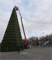 На Соборной площади приступили к монтажу светового шатра на главной новогодней ёлке