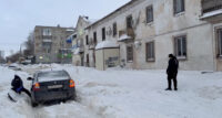 Сошедший с крыши снег заблокировал выезд из целого микрорайона