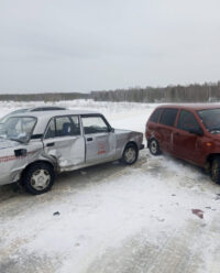 На ульяновской трассе «Рено» вылетел в отбойник и повис на столбах крепления: фото