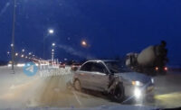 Бетономешалка снесла Киа на подъезде к Президентскому мосту: видео